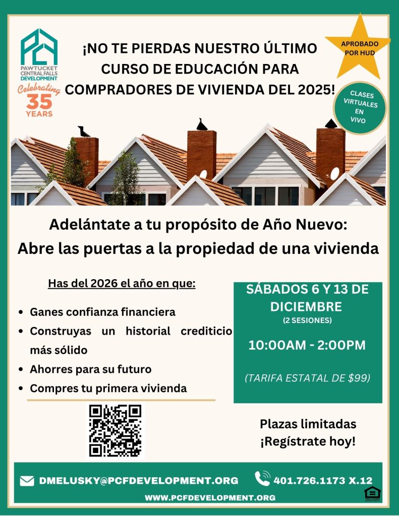 Homebuyer Education is a necessary component of the purchasing process. PCF Development can guide you through your homeownership journey. Our HUD-Approved Pre-purchase Homebuyer Education classes are offered to all. Classes currently take place online. We have convenient evening, morning, and weekend classes in English and Spanish throughout the year.