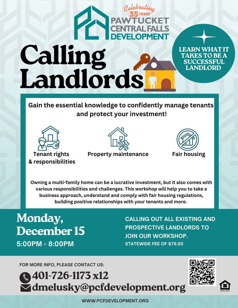 This workshop provides a comprehensive overview of the business of managing a multi-family home. As a landlord you’re running a business. Learn what it takes to be successful and have good rapport with your tenants. Understand Rhode Island landlord/tenant law and your responsibilities as a landlord from applications, lease agreements, lead disclosures, and more.